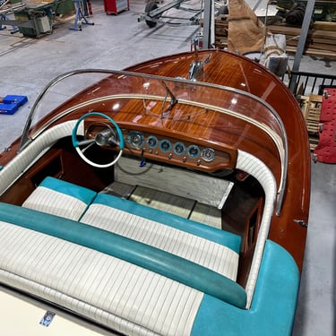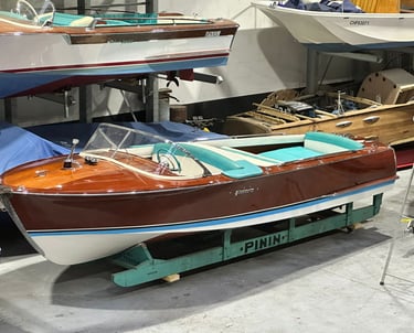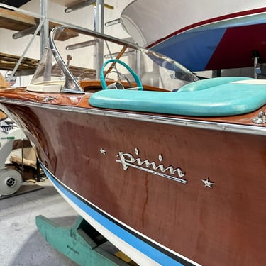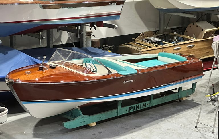 Influence Automobile : Étant basés à Turin, les artisans de Pinin utilisaient des composants provenant des fournisseurs automobiles locaux (cadrans Veglia, volants en bakélite, chromes) pour donner à leurs canots un look de "cabriolet des mers".